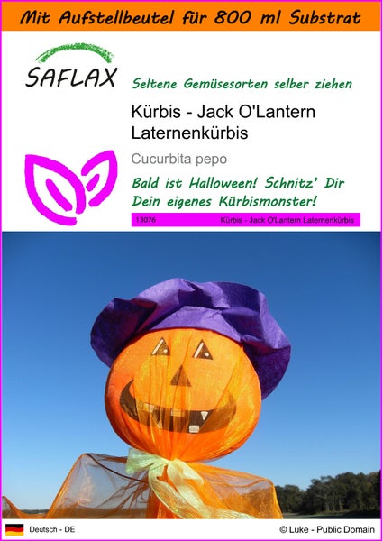SAFLAX Garden in the bag - Kürbis - Jack O'Lantern Laternenkürbis - Cucurbita pepo - 10 Samen - Mit Anzuchtsubstrat im praktischen, selbst aufstellenden Beutel