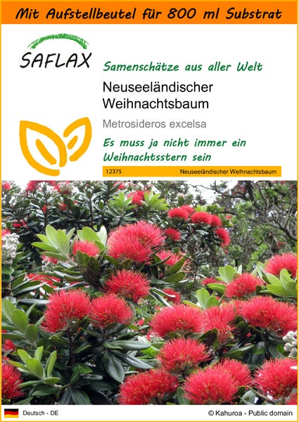 SAFLAX Garden in the bag - Neuseeländischer Weihnachtsbaum - Metrosideros excelsa - 300 Samen - Mit Anzuchtsubstrat im praktischen, selbst aufstellenden Beutel