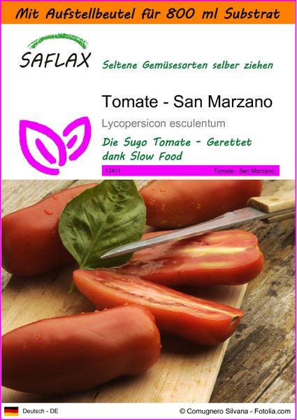 SAFLAX Garden in the bag - Tomate - San Marzano - Lycopersicon esculentum - 10 Samen - Mit Anzuchtsubstrat im praktischen, selbst aufstellenden Beutel