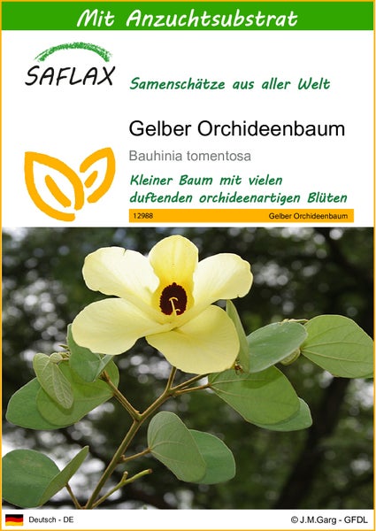 SAFLAX - Gelber Orchideenbaum - Bauhinia tomentosa - 30 Samen - Mit keimfreiem Anzuchtsubstrat