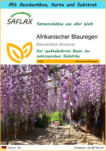SAFLAX Geschenk Set - Afrikanischer Blauregen - Bolusanthus africanus - 15 Samen - Mit Geschenkbox, Versandaufkleber, Geschenkkarte und Anzuchtsubstrat