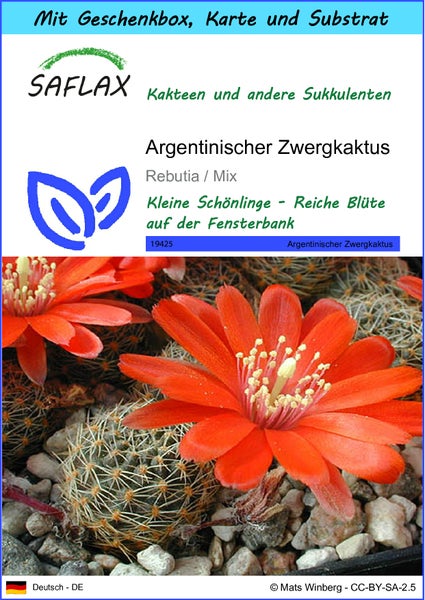 SAFLAX Geschenk Set - Argentinischer Zwergkaktus - Rebutia / Mix - 40 Samen - Mit Geschenkbox, Versandaufkleber, Geschenkkarte und Anzuchtsubstrat