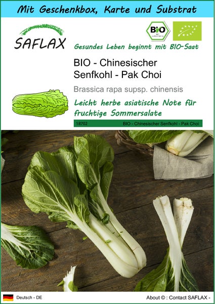 SAFLAX Geschenk Set - BIO - Chinesischer Senfkohl - Pak Choi - Brassica rapa supsp. chinensis - 300 Samen - Mit Geschenkbox, Versandaufkleber, Geschenkkarte und Anzuchtsubstrat
