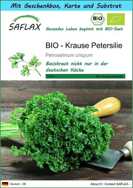 SAFLAX Geschenk Set - BIO - Krause Petersilie - Petroselinum crispum - 800 Samen - Mit Geschenkbox, Versandaufkleber, Geschenkkarte und Anzuchtsubstrat