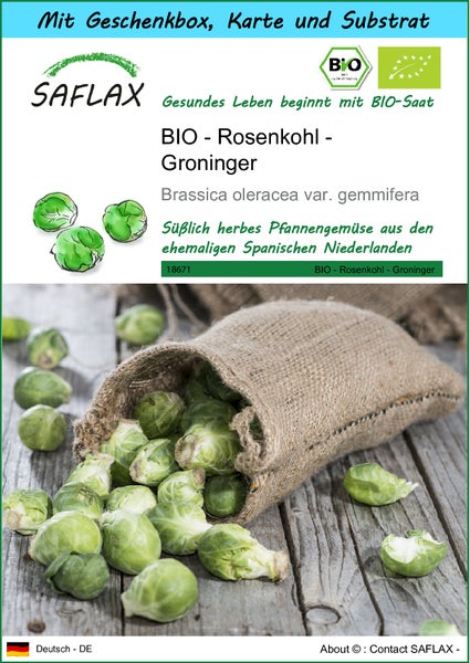 SAFLAX Geschenk Set - BIO - Rosenkohl - Groninger - Brassica oleracea var. gemmifera - 30 Samen - Mit Geschenkbox, Versandaufkleber, Geschenkkarte und Anzuchtsubstrat