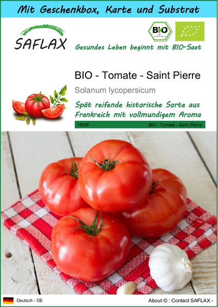 SAFLAX Geschenk Set - BIO - Tomate - Saint Pierre - Solanum lycopersicum - 15 Samen - Mit Geschenkbox, Versandaufkleber, Geschenkkarte und Anzuchtsubstrat