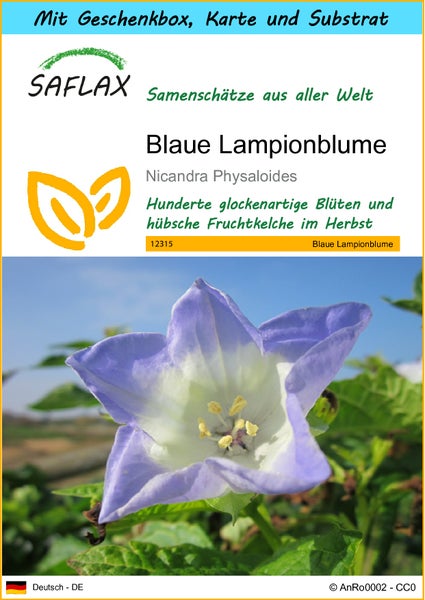 SAFLAX Geschenk Set - Blaue Lampionblume - Nicandra Physaloides - 100 Samen - Mit Geschenkbox, Versandaufkleber, Geschenkkarte und Anzuchtsubstrat