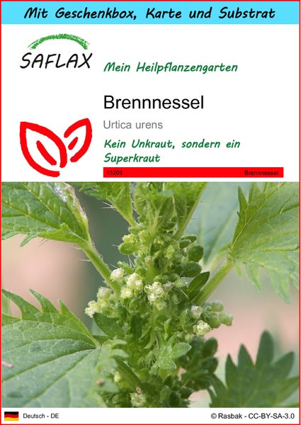 SAFLAX Geschenk Set - Brennnessel - Urtica urens - 150 Samen - Mit Geschenkbox, Versandaufkleber, Geschenkkarte und Anzuchtsubstrat