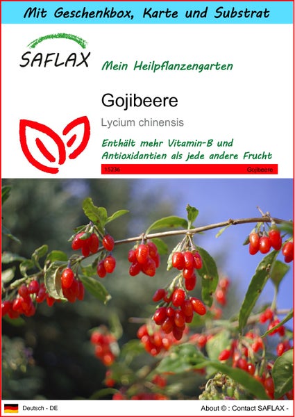 SAFLAX Geschenk Set - Gojibeere - Lycium chinensis - 200 Samen - Mit Geschenkbox, Versandaufkleber, Geschenkkarte und Anzuchtsubstrat