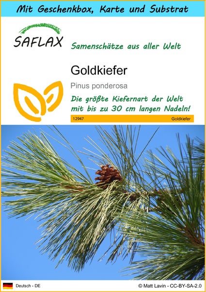 SAFLAX Geschenk Set - Goldkiefer - Pinus ponderosa - 20 Samen - Mit Geschenkbox, Versandaufkleber, Geschenkkarte und Anzuchtsubstrat
