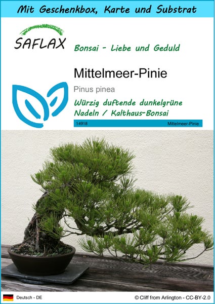 SAFLAX Geschenk Set - Mittelmeer-Pinie - Pinus pinea - 6 Samen - Mit Geschenkbox, Versandaufkleber, Geschenkkarte und Anzuchtsubstrat