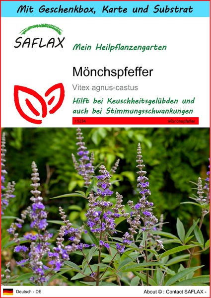 SAFLAX Geschenk Set - Mönchspfeffer - Vitex agnus-castus - 30 Samen - Mit Geschenkbox, Versandaufkleber, Geschenkkarte und Anzuchtsubstrat