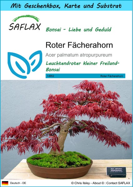SAFLAX Geschenk Set - Roter Fächerahorn - Acer palmatum atropurpureum - 20 Samen - Mit Geschenkbox, Versandaufkleber, Geschenkkarte und Anzuchtsubstrat