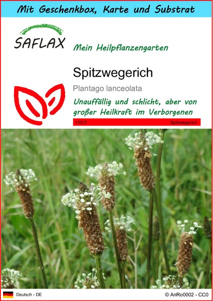 SAFLAX Geschenk Set - Spitzwegerich - Plantago lanceolata - 100 Samen - Mit Geschenkbox, Versandaufkleber, Geschenkkarte und Anzuchtsubstrat