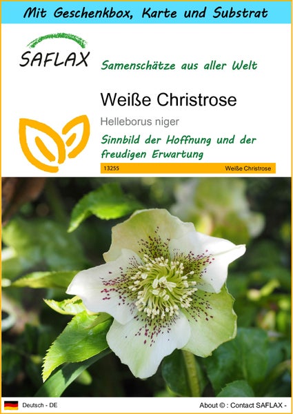 SAFLAX Geschenk Set - Weiße Christrose - Helleborus niger - 6 Samen - Mit Geschenkbox, Versandaufkleber, Geschenkkarte und Anzuchtsubstrat