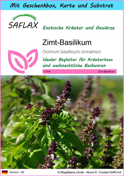 SAFLAX Geschenk Set - Zimt-Basilikum - Ocimum basilicum cinnamon - 200 Samen - Mit Geschenkbox, Versandaufkleber, Geschenkkarte und Anzuchtsubstrat