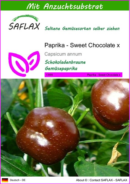 SAFLAX - Paprika - Sweet Chocolate x - Capsicum annum - 10 Samen - Mit keimfreiem Anzuchtsubstrat