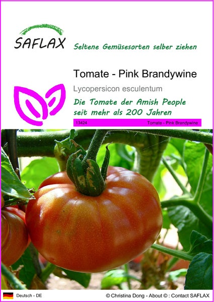 Die ertragreiche und widerstandsfähige Sorte Pink Brandywine ist die Mutter aller Brandywine Varianten, geht in der Zucht seit 200 Jahren auf die Amish People zurück und setzt in den USA den Geschmackspunkt, an dem sich alle Tomaten messen müssen. Kartoffelförmige Blätter, große Blüten und bis zu einem Pfund schwere, rosarote und saftige Früchte sind ihr Markenzeichen. Die saftige Brandywine mit ihrem festen Fruchtfleisch eignet sich wunderbar für Saucen (Sugo) und anderen Tomaten-Gerichten. Gute Gastronomen verleihen mit ihr italienischen Gerichten den entscheidenden Pfiff.