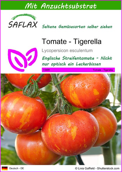 SAFLAX - Tomate - Tigerella - Lycopersicon esculentum - 10 Samen - Mit keimfreiem Anzuchtsubstrat