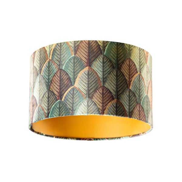 Samtlampenschirm mit Blattdesign und goldener Innenseite 35/35/20