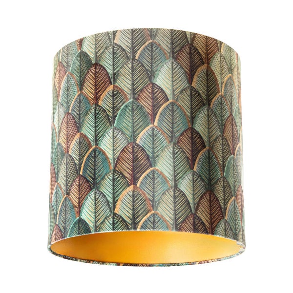 Samtlampenschirm mit Blattdesign und goldener Innenseite 40/40/40