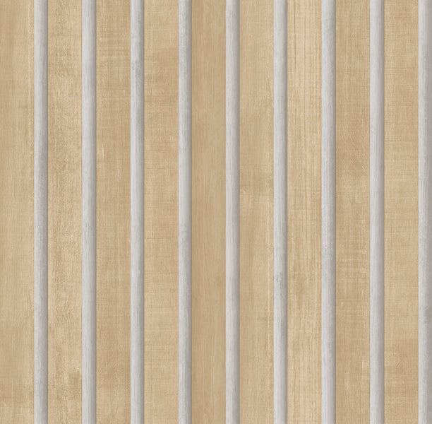Diese Tapete mit 3D-Holzpaneelen in Braun und Beige macht jede Wand zu einem wahren Hingucker und passt perfekt in einen modernen Einrichtungsstil.