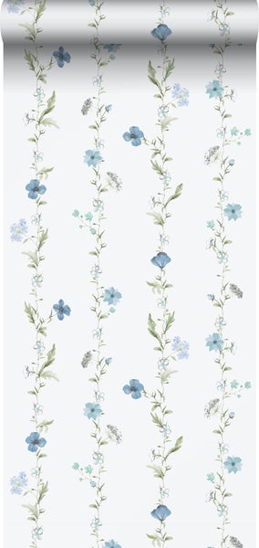 Diese stilvolle Tapete mit Blumen in Blau und Weiß verleiht jedem Wohnraum einen romantischen, vintage Touch. Die Tapete hat eine schöne matte Oberfläche und sorgt für eine warme und stimmungsvolle Atmosphäre.
