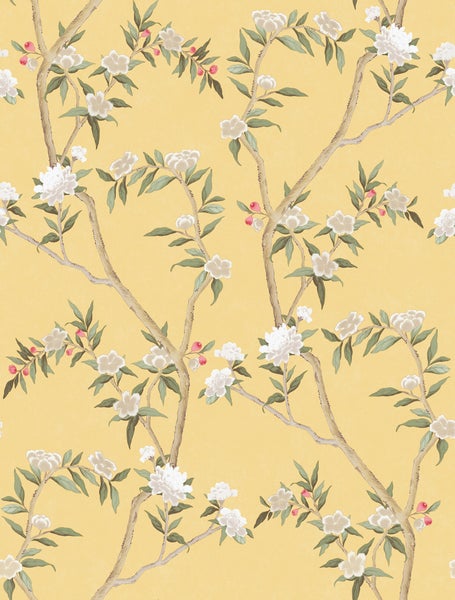 Diese stilvolle Tapete mit Blumen in Gelb und Grün verleiht jedem Wohnraum einen romantischen, vintage Touch. Die Tapete hat eine schöne matte Oberfläche und sorgt für eine warme und stimmungsvolle Atmosphäre.