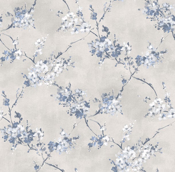 Diese schöne Tapete mit Blumen in Graublau sorgt in jedem Wohnraum für eine warme, romantische Atmosphäre. Sie versprüht sogar einen Hauch Nostalgie und lässt an vergangene Zeiten erinnern.
