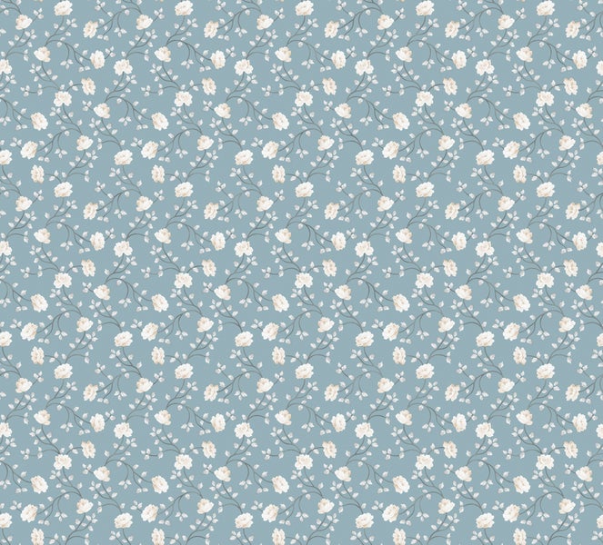 Diese stilvolle Tapete mit Blumen in Graublau und Weiß verleiht jedem Wohnraum einen romantischen, vintage Touch. Die Tapete hat eine schöne matte Oberfläche und sorgt für eine warme und stimmungsvolle Atmosphäre.