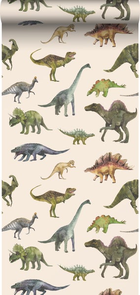 Sanders & Sanders Tapete Dinosaurier Grün und Beige 50 x 900 cm