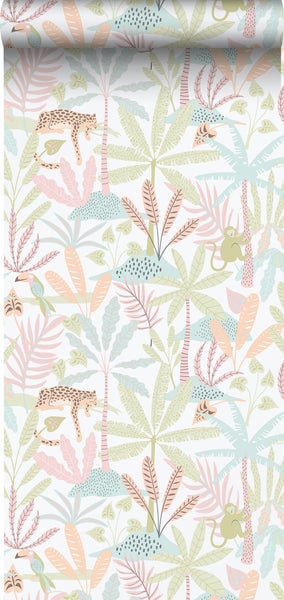 Sanders & Sanders Tapete Dschungeltiere Grün, Rosa und Blau 53 cm x 10.05 m