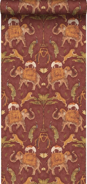 Diese stilvolle Tapete mit Elefanten in Terrakotta gibt jedem Wohnraum einen exotischen Touch und sorgt für ein warmes und stimmungsvolles Ambiente.