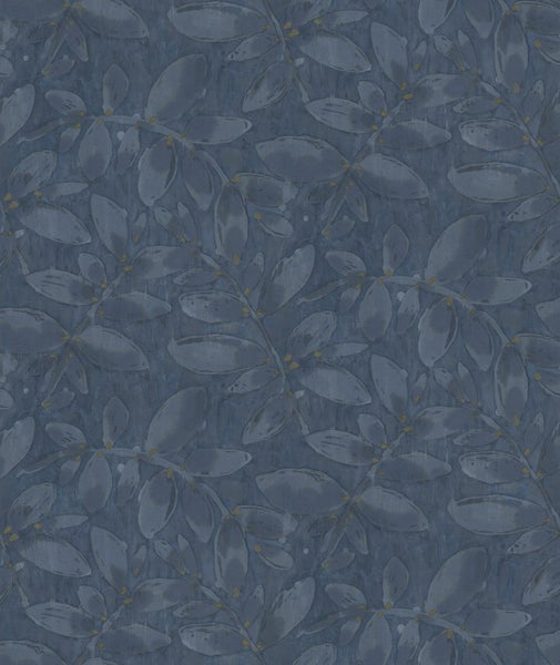 Diese schöne Tapete mit gezeichneten Blättern in Dunkelblau macht jede Wand zu einem stilvollen Eyecatcher und lässt eine stimmungsvolle und exklusive Atmosphäre entstehen.