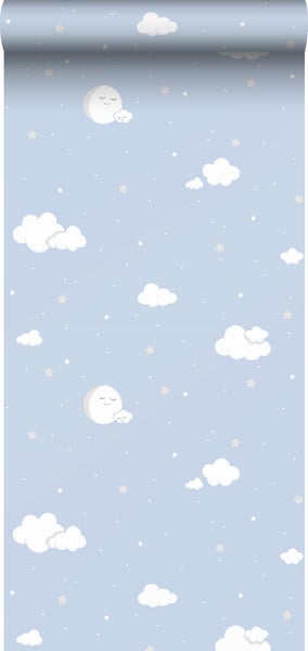 Sanders & Sanders Tapete kleine Wolken Blau und Weiß 53 cm x 10 m