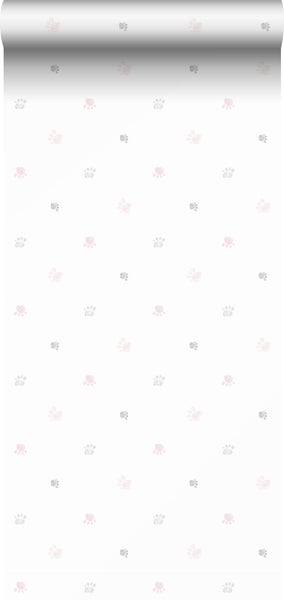 Sanders & Sanders Tapete Pfotenabdrücken Rosa, Grau und Weiß 53 cm x 10 m