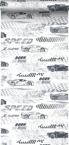 Sanders & Sanders Tapete Rennwagen Schwarz-Weiß 50 x 900 cm