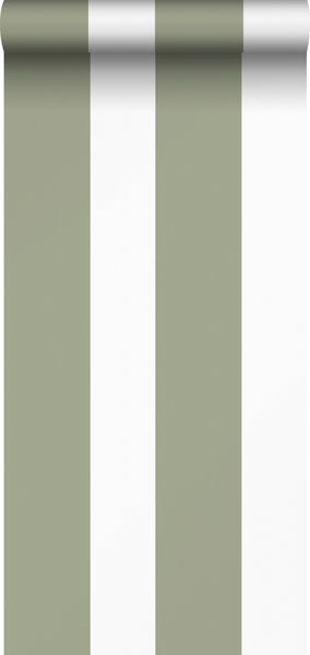 Sanders & Sanders Tapete Streifen Olivgrün und Weiß 53 cm x 10.05 m