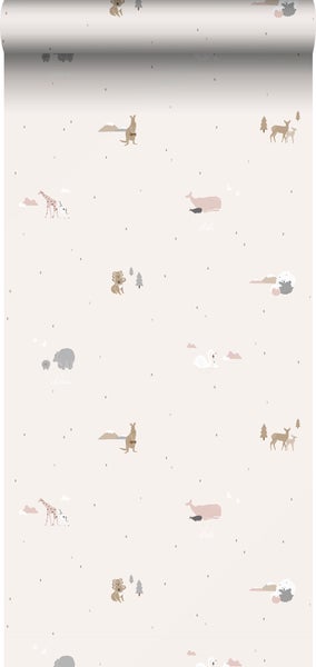 Diese niedliche Tapete mit Tieren in Beige verwandelt jedes Kinderzimmer in ein magisches Abenteuerland. Kombiniert mit hellen Farben und natürlichen Materialien, entsteht eine angenehme und freundliche Atmosphäre, die zum Spielen, Träumen und Lachen einlädt.