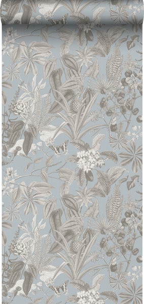 Sanders & Sanders Tapete tropische Blätter und Blüten Graublau 53 cm x 10 m