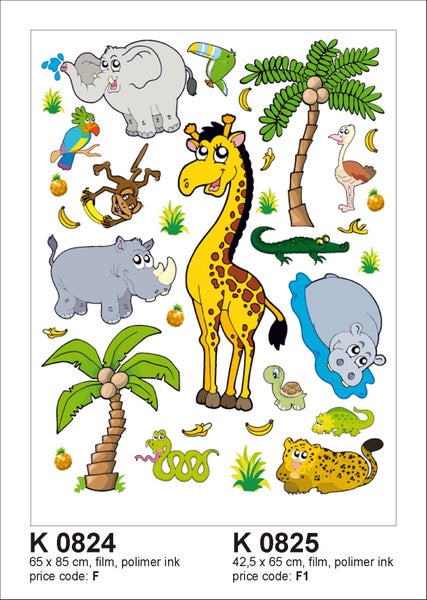 Sanders & Sanders Wandtattoo Dschungeltiere Gelb, Grün und Grau 85 x 65 cm