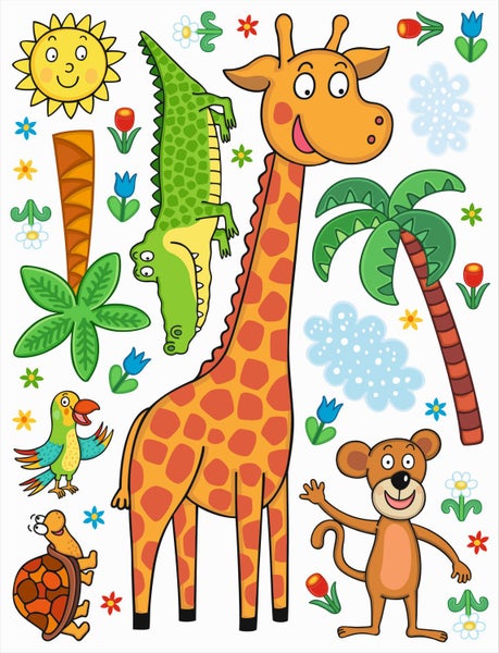 Sanders & Sanders Wandtattoo Dschungeltiere Grün, Orange und Blau 85 x 65 cm