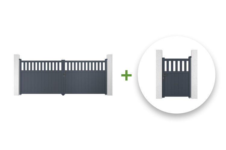 Entdecken Sie unser halbdurchbrochenes Drehflügeltor SANTIS, den perfekten Kompromiss zwischen einem durchbrochenen Tor und einem vollen Tor, um Ihren Bedürfnissen nach Privatsphäre gerecht zu werden und gleichzeitig Ihre Sichtbarkeit zu wahren.