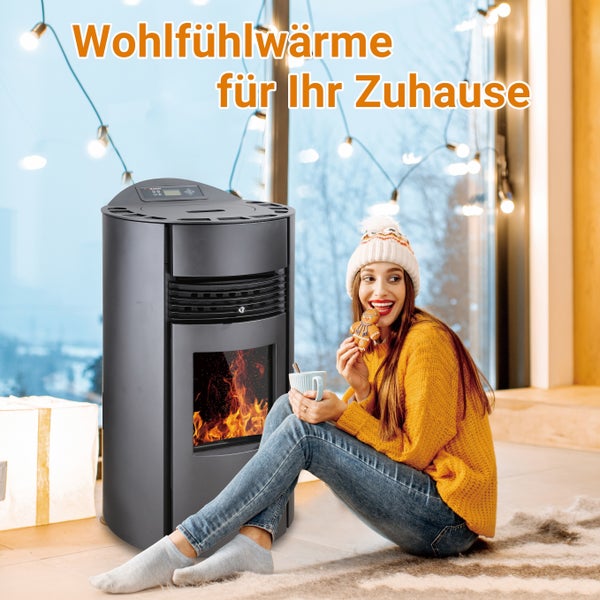 SCHENGER Pelletofen HP051-R Schwarz A+ 8,8kW Vollautomatisch+WIFI+Eco Modus