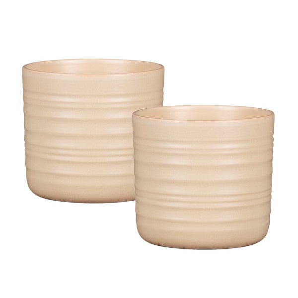 Scheurich Cottage, Blumentopf 2er Set aus Keramik, Farbe: Dry Reed, 16,6 cm Durchmesser, 15,3 cm hoch, 2,6 l Vol.