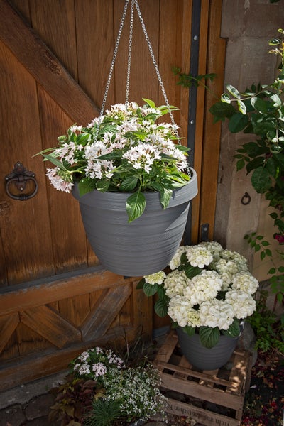 Country Star ist der bei Gartenfans beliebte Pflanzkübel-Allrounder. Mit seinem natürlichem, rustikalen Look und seiner organischen Form passt er einfach perfekt in den Gemüse- oder Landhaus-Garten sowie auf Terrasse und Balkon. An der praktischen Kette aufgehängt, sorgt das Hängegefäß, passend bepflanzt, für eine natürlich schöne Atmosphäre