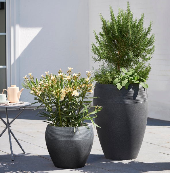 Das Lineo High Hochgefäß bringt den Natur-Trend auf Terrasse, Balkon und in den Garten. Seine bauchige Form mit dem dezenten Relief unterstreicht seinen besonderen Look wie handgemacht. Der hohe Pflanzkübel mit Inneneinsatz kann bequem be- und umgepflanzt werden. Das dickwandige Design überzeugt genauso wie seine funktionalen Extras: