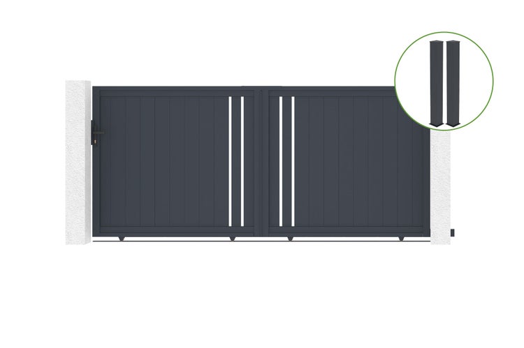 Schiebetor 3,5 m GIONA H.160 cm graues Aluminium + 2 Pfosten 20x20 cm H.190 cm