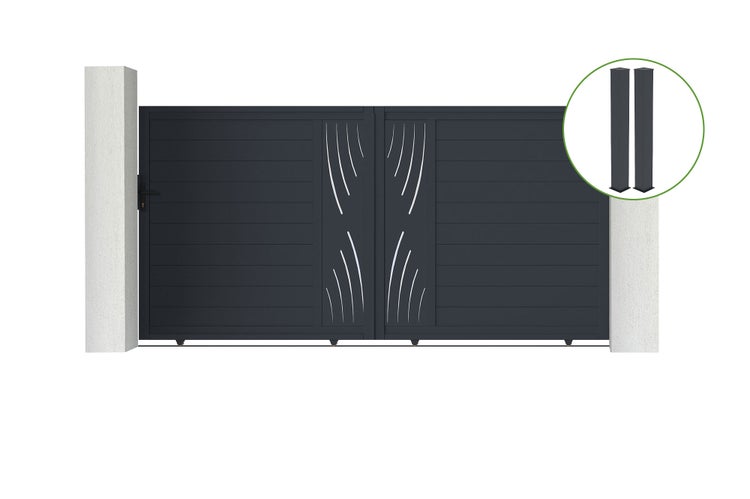 Schiebetor 3,5 m VELETA H.180 cm graues Aluminium + 2 Pfosten 20 x 20 cm H. 190