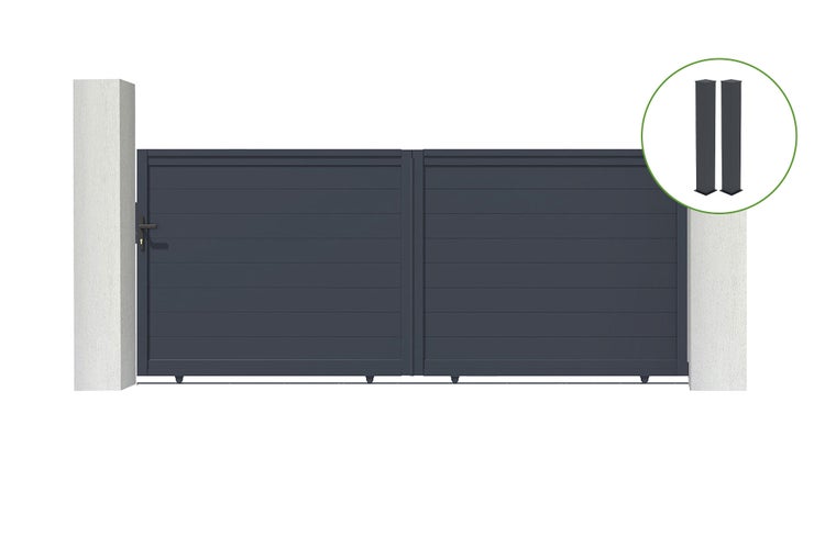 Schiebetor 3,5m EIGER H.140cm graues Aluminium + 2 Pfosten 20x20cm H.166cm